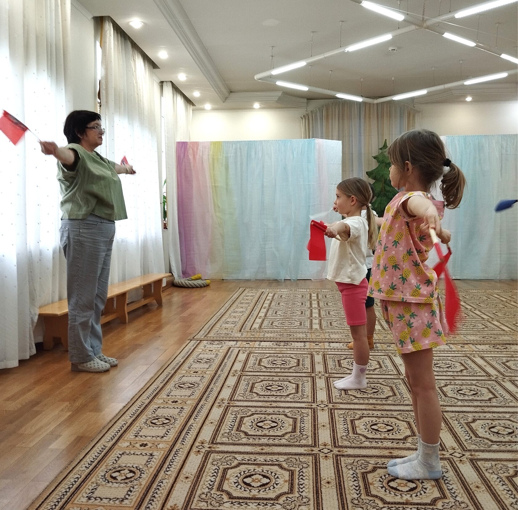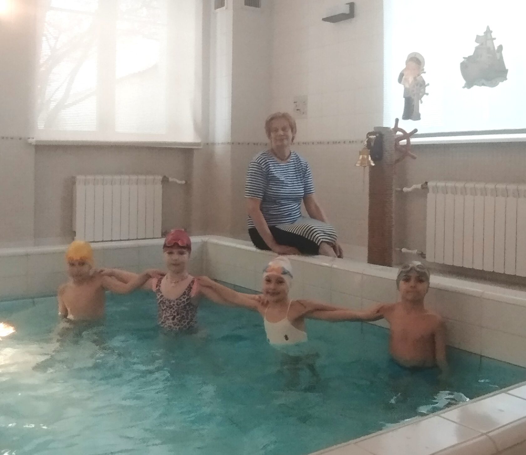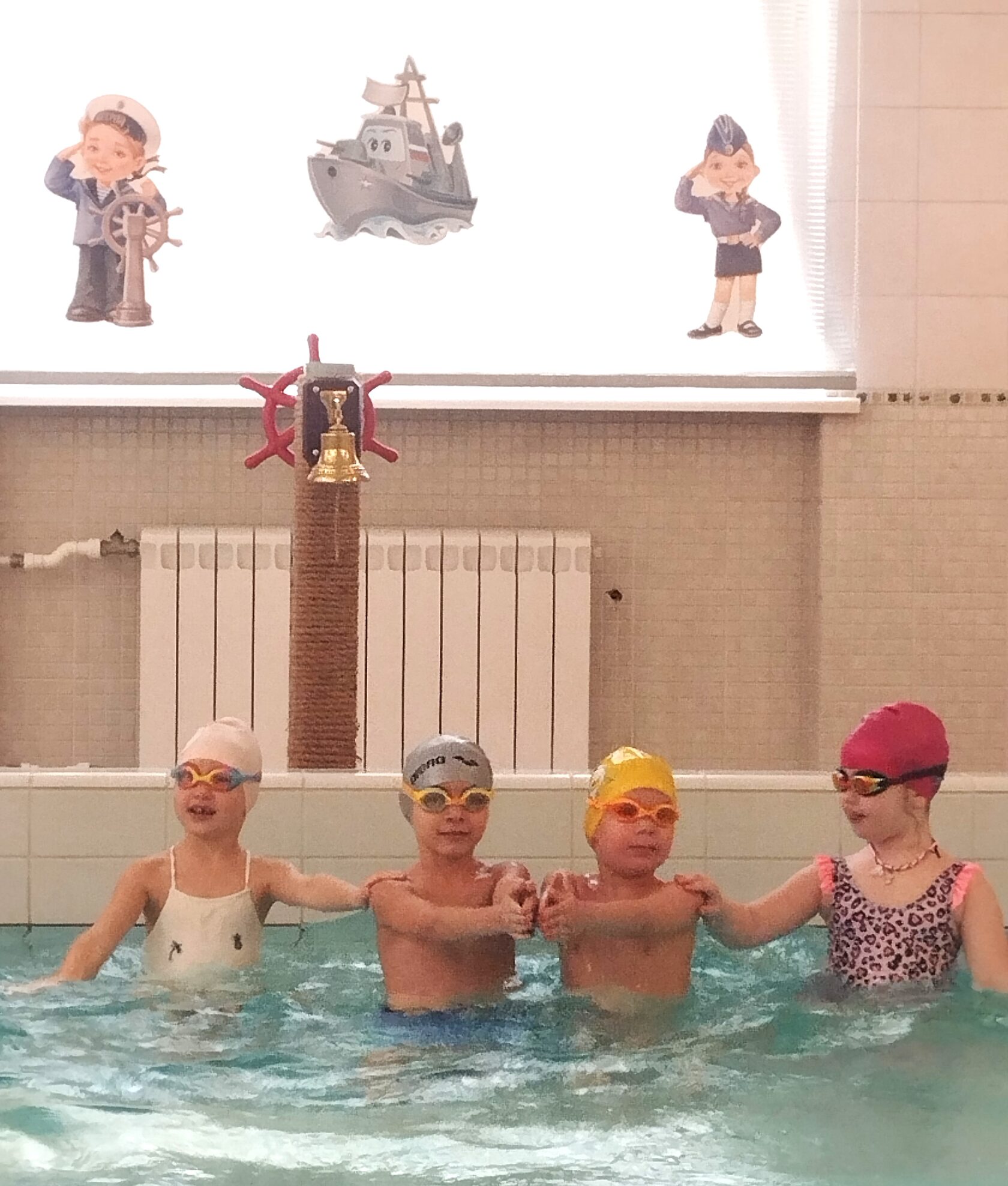 Под руководством инструктора по физкультуре Мещановой Т.И. в бассейне показали свои умения воспитанники старшей группы под песню «По морям, по волнам».
