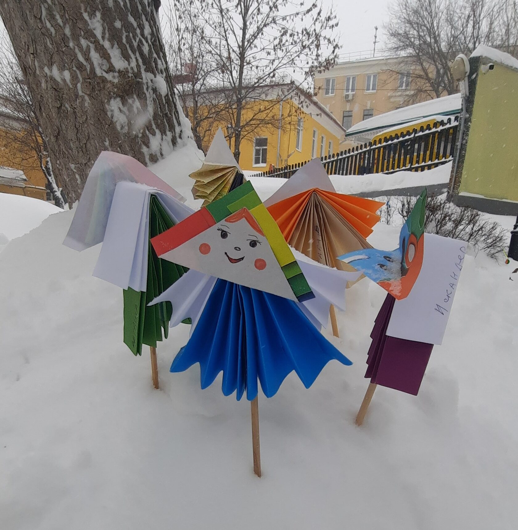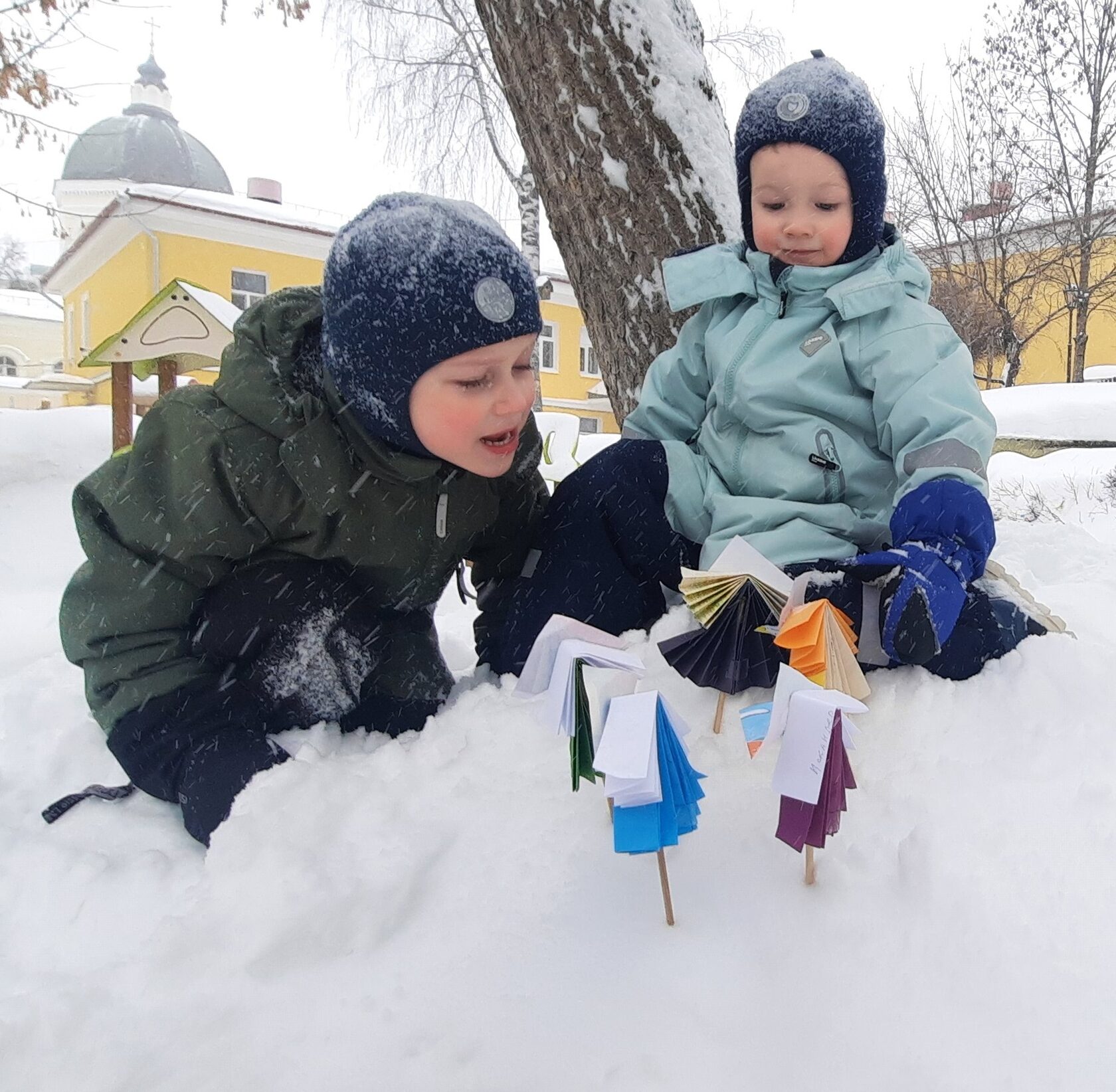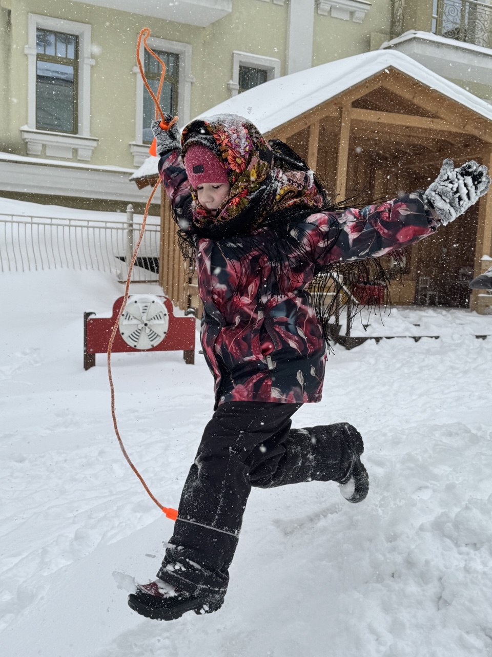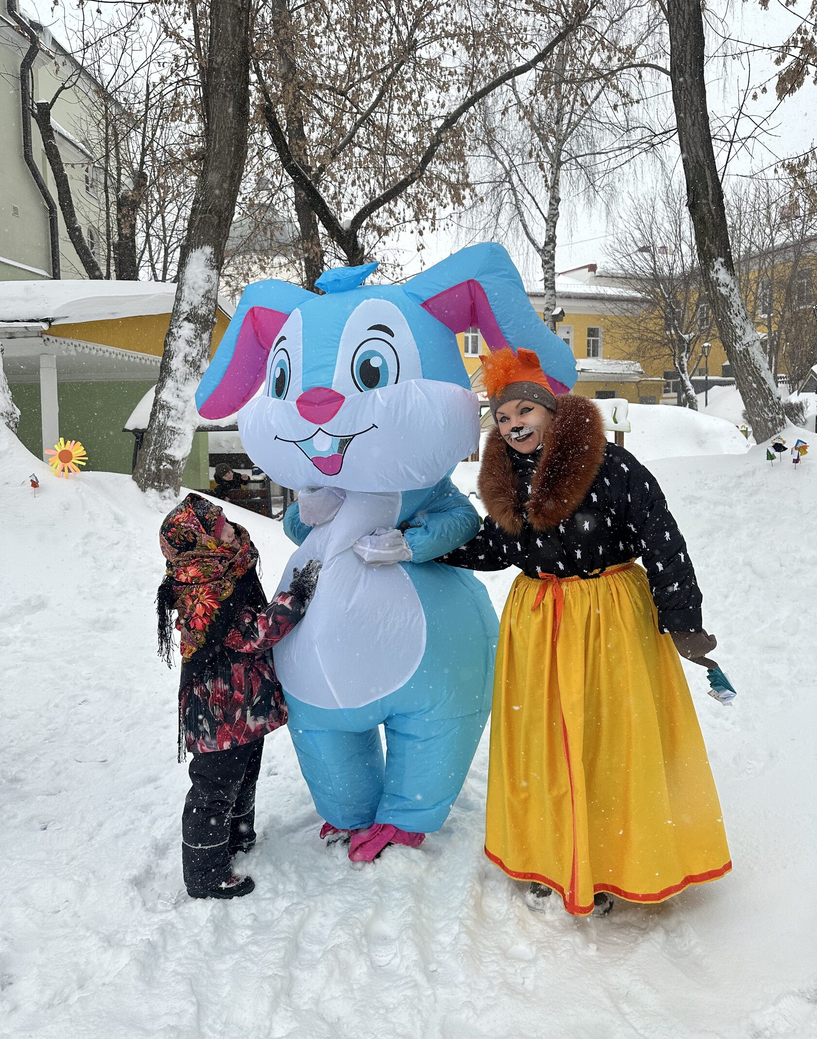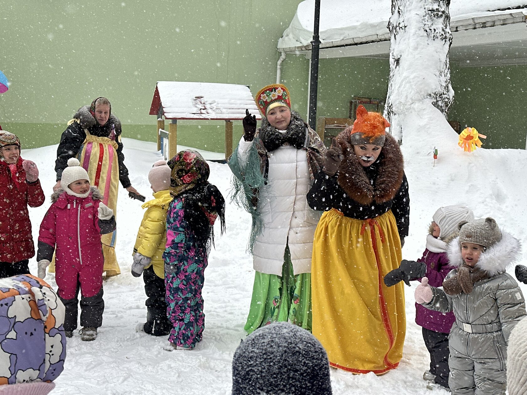 а затем празднование переместилось на улицу, где ребята играли в русские народные игры, водили хороводы, позабавились со свежевыпавшим снегом и приняли участие в мастер-классе игры на народных инструментах.